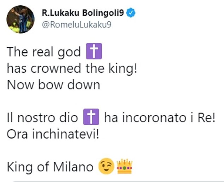 'Now bow down. King of Milano,' the striker added, with a winking face and a crown emoji.