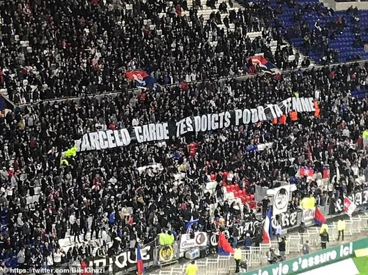 And another crude banner which read 'keep your fingers for your wife' was unveiled by fans during the Ligue 1 clash against Rennes.