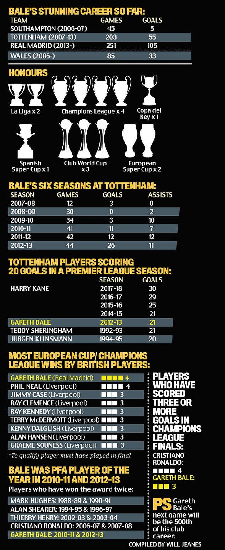 Bale's last game for the club was on May 19, 2013. His manager, Andre Villas-Boas, has had three jobs since then; the opponents, Sunderland, have fallen two divisions; one of Bale's team-mates that day, Brad Friedel, will be 50 next birthday.