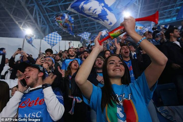 Sixty thousand fans had packed into the sold-out Diego Maradona stadium to watch the game live on giant screens as it was beamed back from Udine 500 miles away.