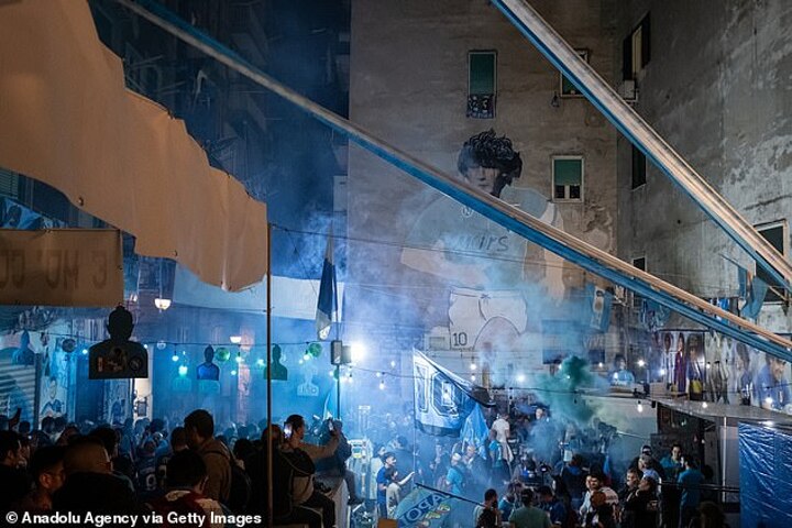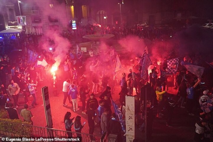 It said: 'Spontaneous celebrations are expected to take place throughout Naples from the end of April to early May following the Serie A football championship.
