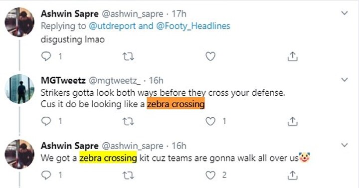 Twitter user MGTweetz said 'Strikers gotta look both ways before they cross your defence. Cus it do be looking like a zebra crossing.'