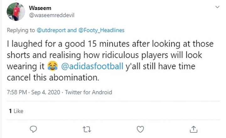 Twitter user Wassem said: 'I laughed for a good 15 minutes after looking at those shorts and realising how ridiculous players will look wearing. @adidasfootball y'all still have time cancel this abomination.'