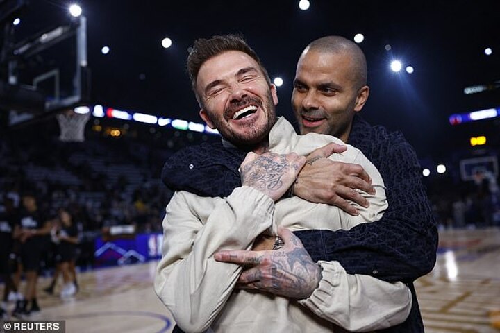 The Inter Miami owner posed for a picture with former NBA Finals MVP Tony Parker, of the San Antonio Spurs.