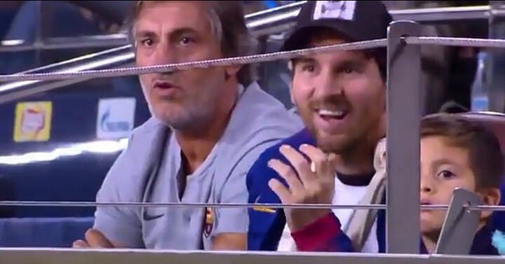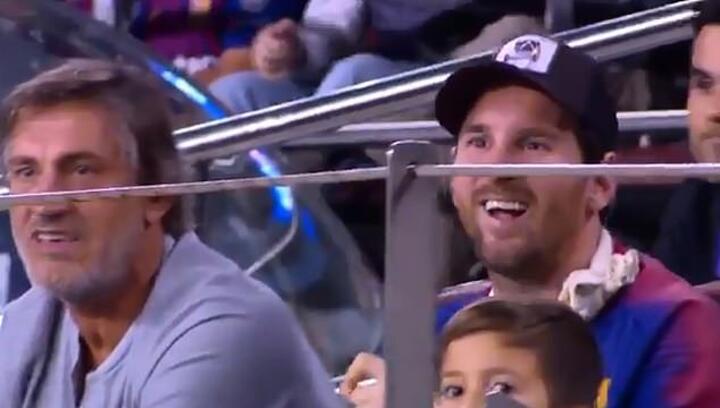 Messi was spotted laughing as he watched the scene unfold but he'll likely be less relaxed at the weekend as he watches Barcelona take on Real Madrid in El Clasico.
