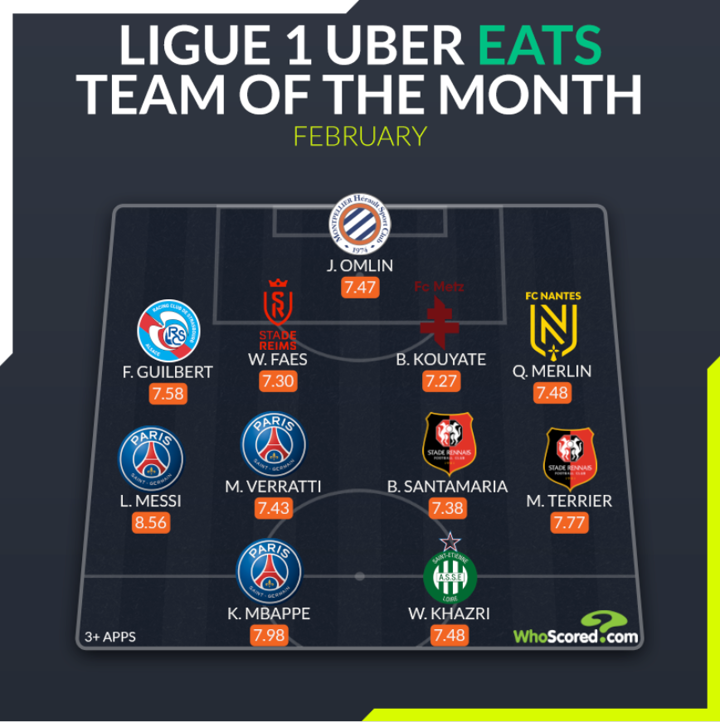 Messi leads the way in this Feb 'WhoScored' Ligue 1 Team of the Month!
