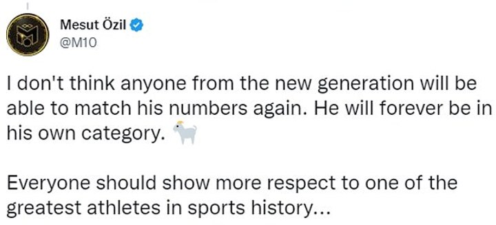 Ozil, meanwhile, has been plying his trade in Turkey for the past three years after leaving Arsenal in 2020.