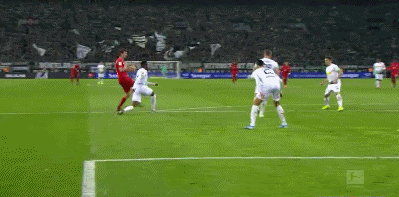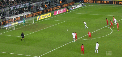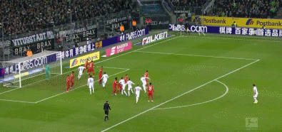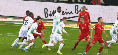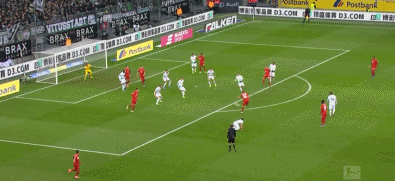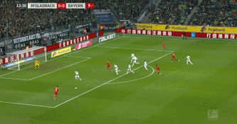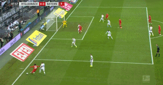 Monchengladbach fail to clear a Bayern short corner, as Kimmich is given an opportunity to strike at goal. The shot looks to squeak through the gloves of the goalkeeper, but Sommer manages to turn around and prise the ball off the line before it had crossed!