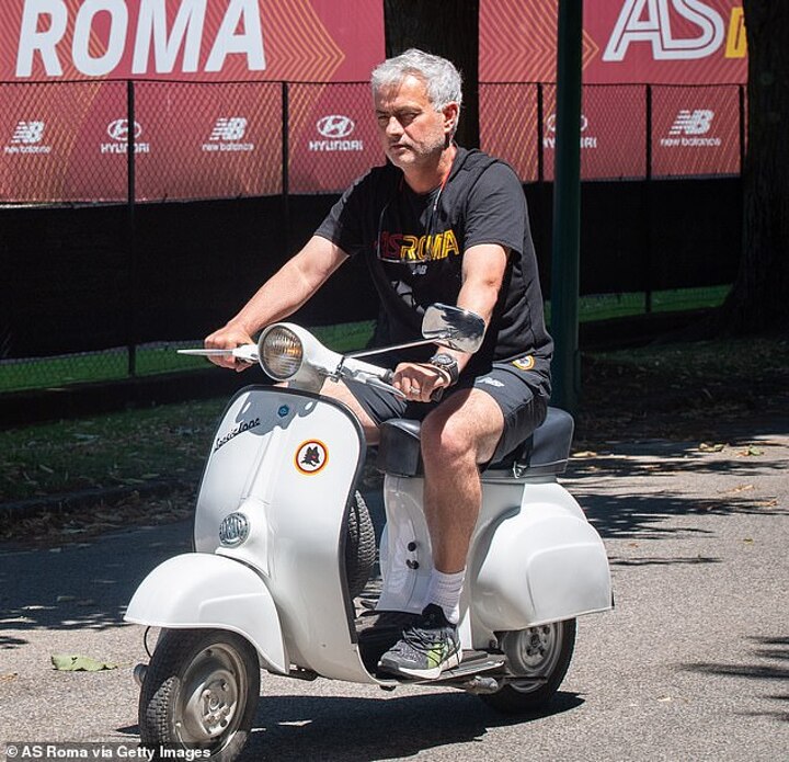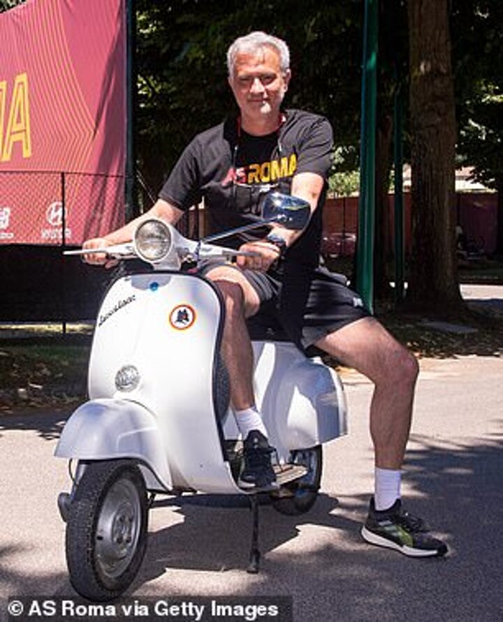 And Mourinho amused followers on Instagram when he drove the famous Italian Vespa scooter around the club's Fulvio Bernardini base on Tuesday, posting a video online with a buggy filming him as the star of the show.