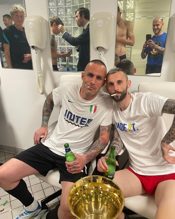 Celebrating the moment of glory, Brozovic posted a comfortable photo of him and goalkeeper Kordas smoking a beer: "We are the champions!" As we all know, the old Inter Milan player Nainggolan has always had the habit of smoking. Seeing such a scene, Nainggolan left a message: "But... do you smoke?" Brozovic responded to Nainggolan's surprise and question: "Sometimes."