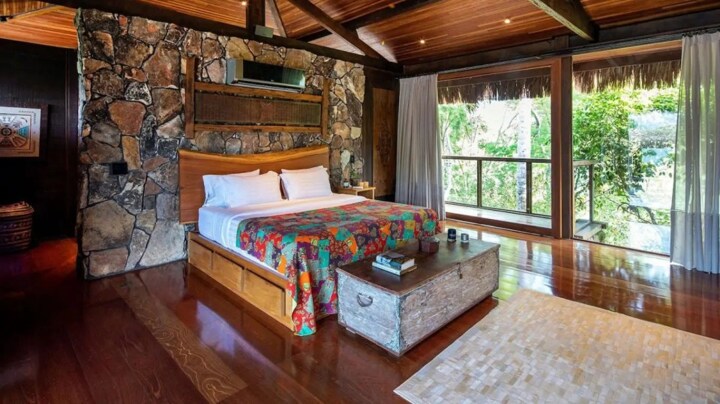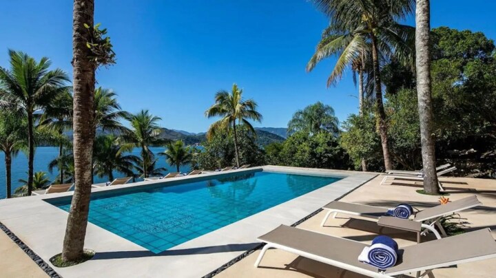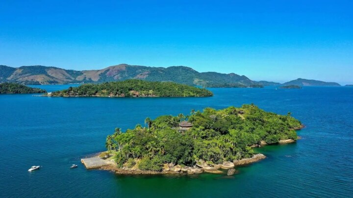 The six-acre tropical hideaway is located off the port town of Angra dos Reis in southwest Rio de Janeiro state.