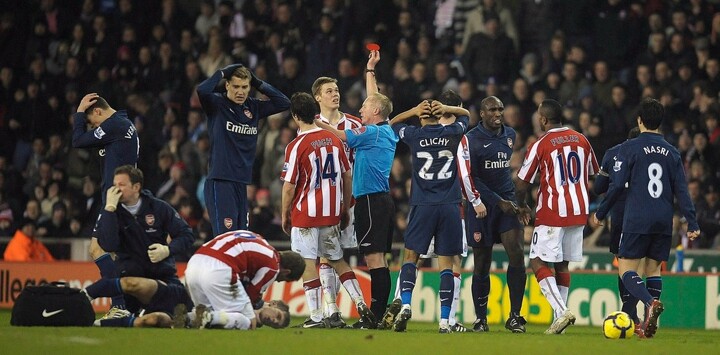 Shawcross took a heavy touch and caught Ramsey just above the ankle as he stretched for the ball.