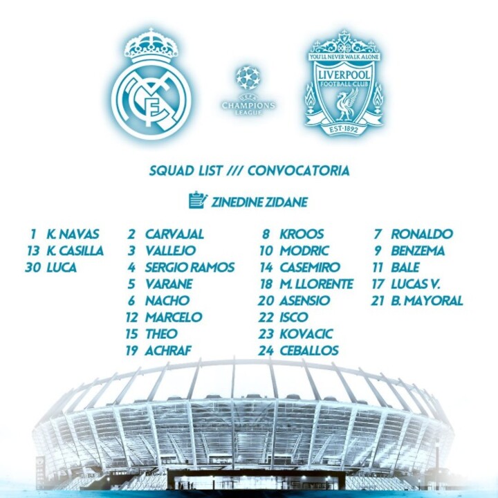 Real Madrid UCL final squad has been confirmed.