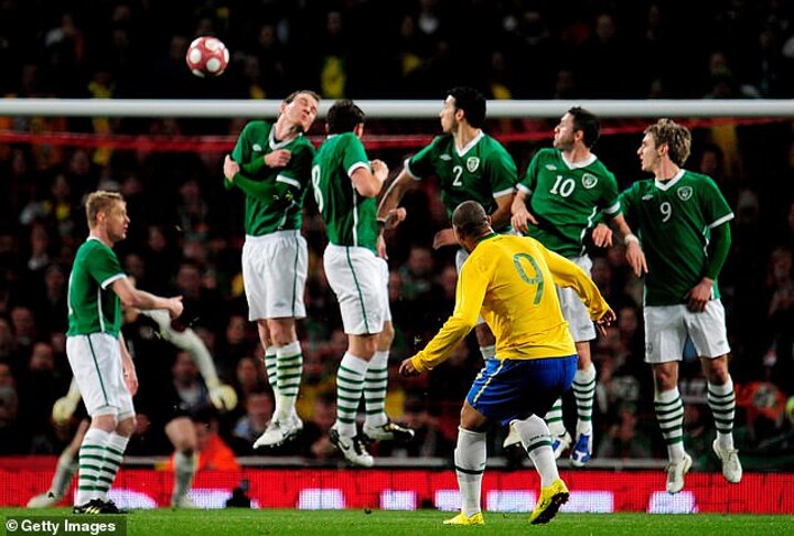Having come on as a substitute during a friendly fixture against Spain's Real Madrid, Adriano stepped up to take a free kick on the edge of the box.