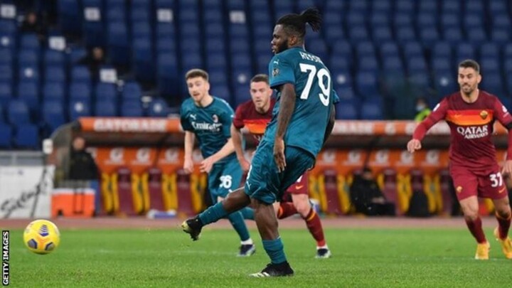 Franck Kessie put Milan ahead from the penalty spot after Roma's Federico Fazio fouled Davide Calabria. But Roma's Jordan Veretout equalised with a fine finish from 18 yards out after five minutes of the second half.However, after striker Zlatan Ibrahimovic went off to protect a groin injury, Milan scored the winner through Ante Rebic's shot on the turn following Alexis Saelemaekers' pass.