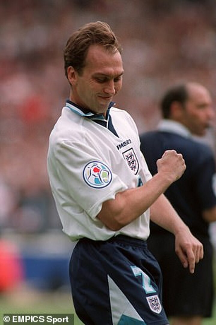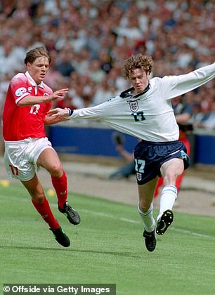 An England veteran by the time of Euro 96, Platt started both knockout matches with Ince, then Neville suspended and Jamie Redknapp injured. The Germany defeat would be the last of his 62 England caps, with Platt ending his career early aged 31 after winning the Premier League with Arsenal in 1998.
