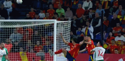 57' GOAL! Merino has another header from Grimaldo's cross! Spain 2-0 Bulgaria
