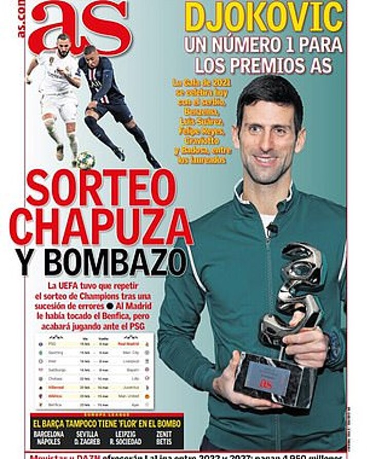 Elsewhere in Spain, AS and SPORT described UEFA's controversial Champions League draw as a 'bombshell' due to the difficulty of Real Madrid's match.