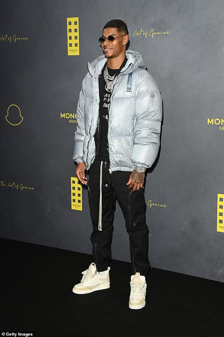 Rashford and Hamilton stood in front of the cameras separately, both in Moncler jackets.