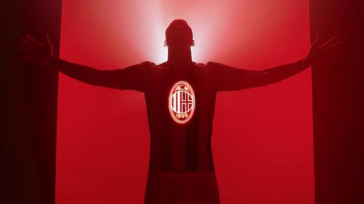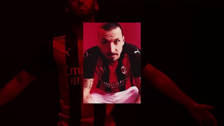 The 38-year-old striker can be glimpsed looking briefly into the camera in a cinematic new video for the strip in Milan's classic red-and-black colours.