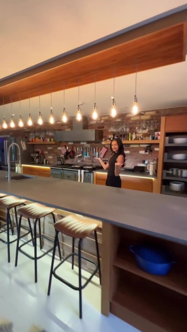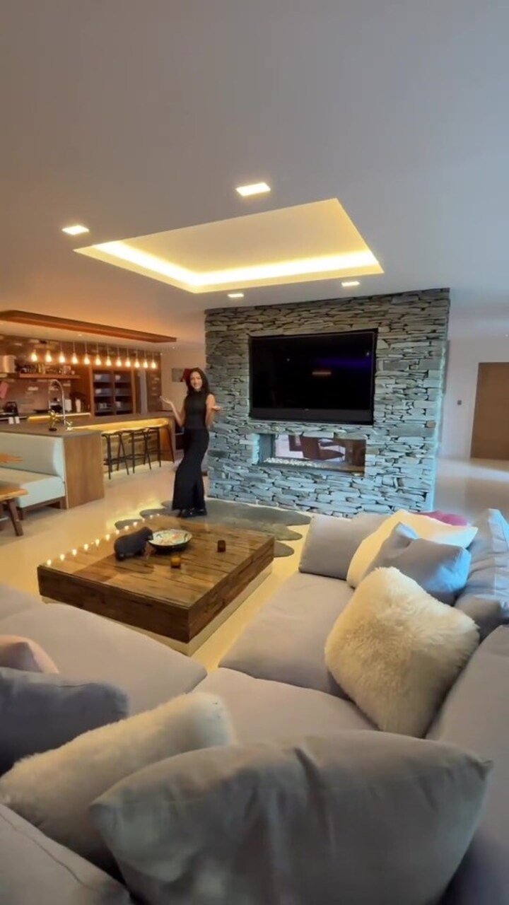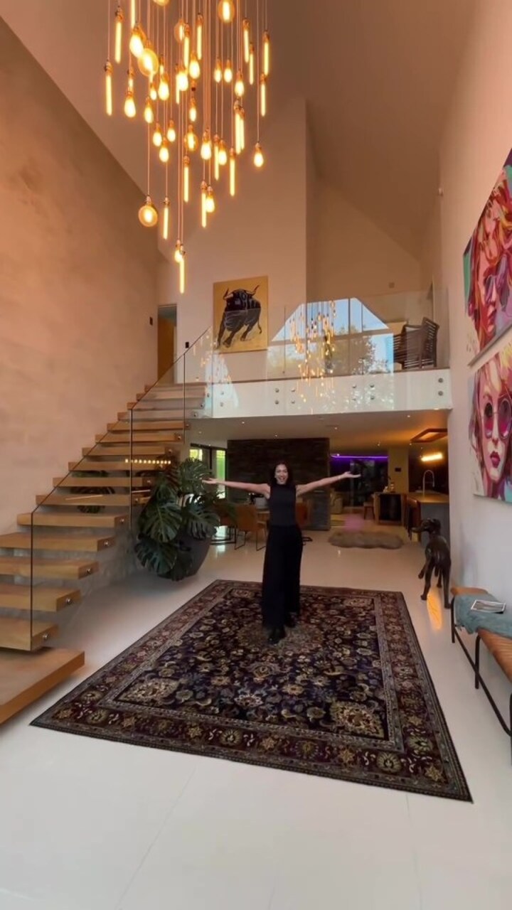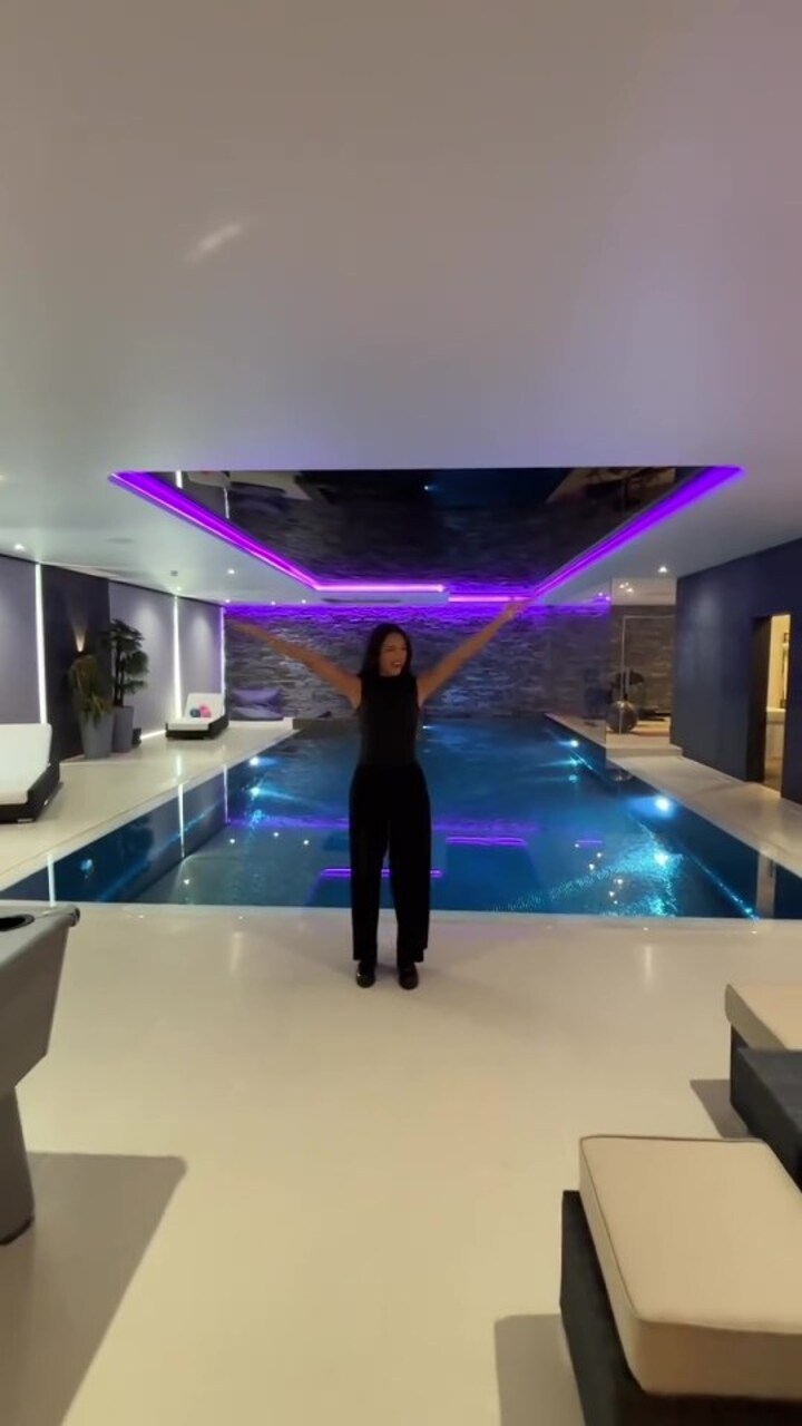 As well as a two-bedroom guest barn, the tour shows off the indoor pool and a kitchen with a breakfast bar.