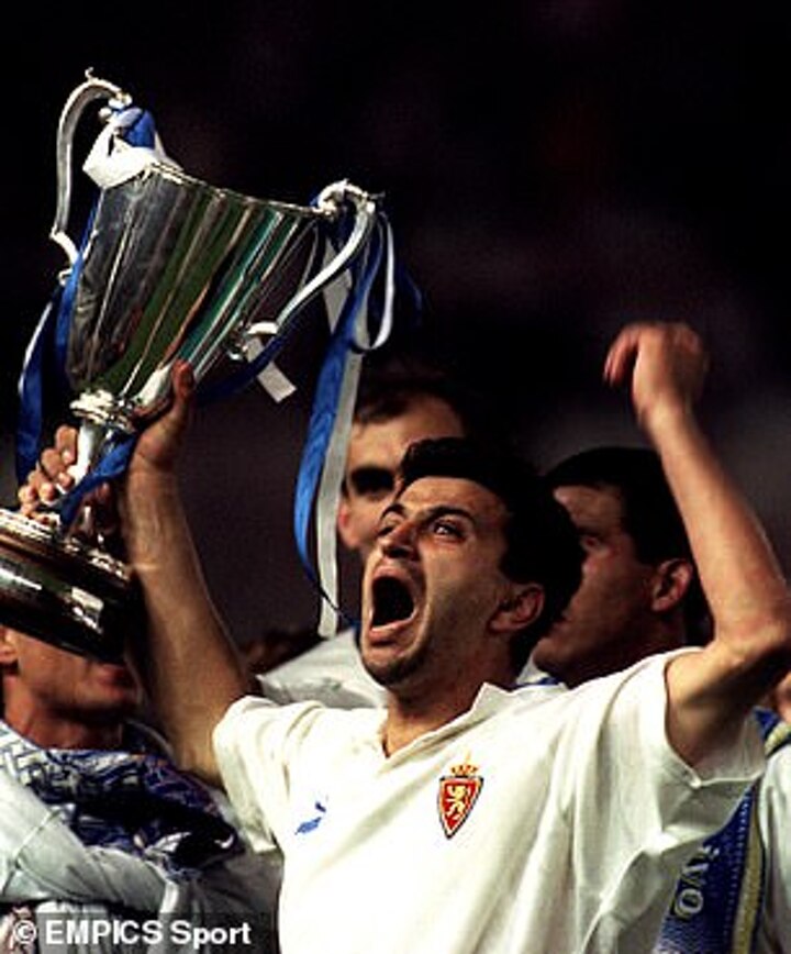 Although perhaps more heart-breaking was their failure to defend the trophy in 1995 after a final defeat by Real Zaragoza, in which former Tottenham midfielder Nayim scored a stunning 50-yard lob in the dying seconds of extra-time. Even more heartbreaking still was being constantly reminded of it by the 'Nayim from the halfway line' chant that followed them around afterwards.
