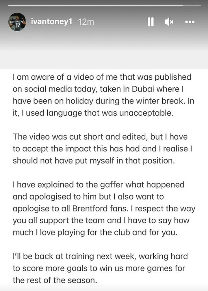 It came just over a month since Toney was forced to apologise for a viral video of him saying 'f*** Brentford.'