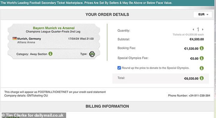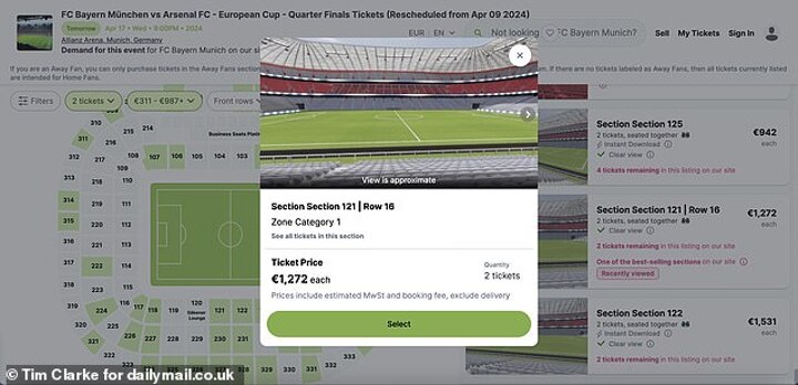 One site was offering a ticket for Wednesday night’s match at the Allianz Arena in Munich for an eye watering £4,000.