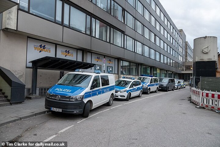 Police in Munich were out in force as thousands of Arsenal fans began arriving with several vans and cars lined up at the main railway station as it was one of the main entry point with trains from the airport.
