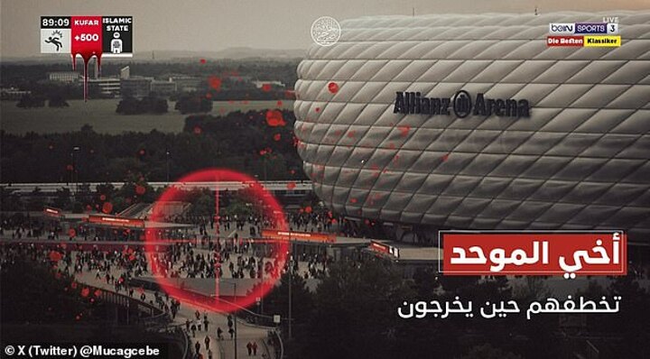 An ISIS propaganda outlet called Sarh al-Khilafah published a photo of the Allianz Arena ahead of a domestic league game at the weekend showing fans with a red target on them.