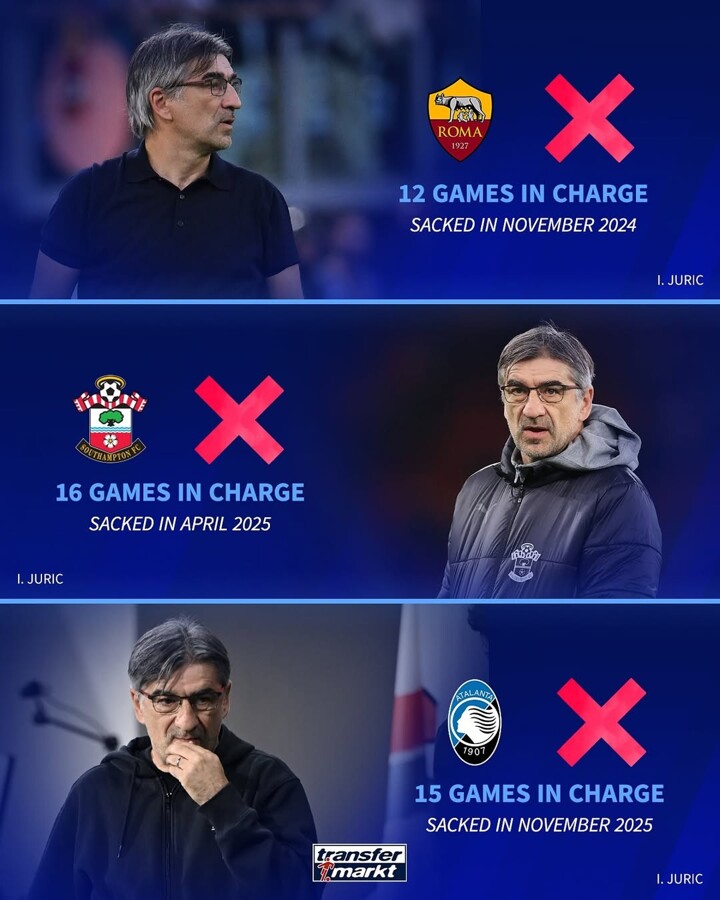 After Ivan Juric experienced his third dismissal within a year, Transfermarkt compiled a list of the head coaches who were sacked by three different clubs in Europe's top five leagues with the shortest intervals since 2000.