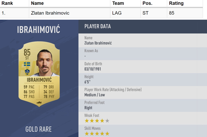 The highest rated MLS player, Ibrahimovic's card is lower than it's been in years but it's still a must-have for MLS fans. He doesn't have much pace, but standing at 6'5" with a 78 physicality and 86 shot, he doesn't need to do much sprinting.