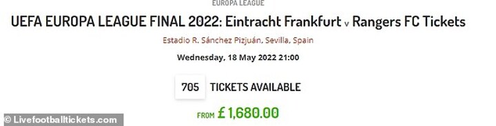 Even for the Europa League final on May 18 in Seville between Rangers and Eintracht Frankfurt, the cheapest ticket on a third-party website currently stands at £1,674.