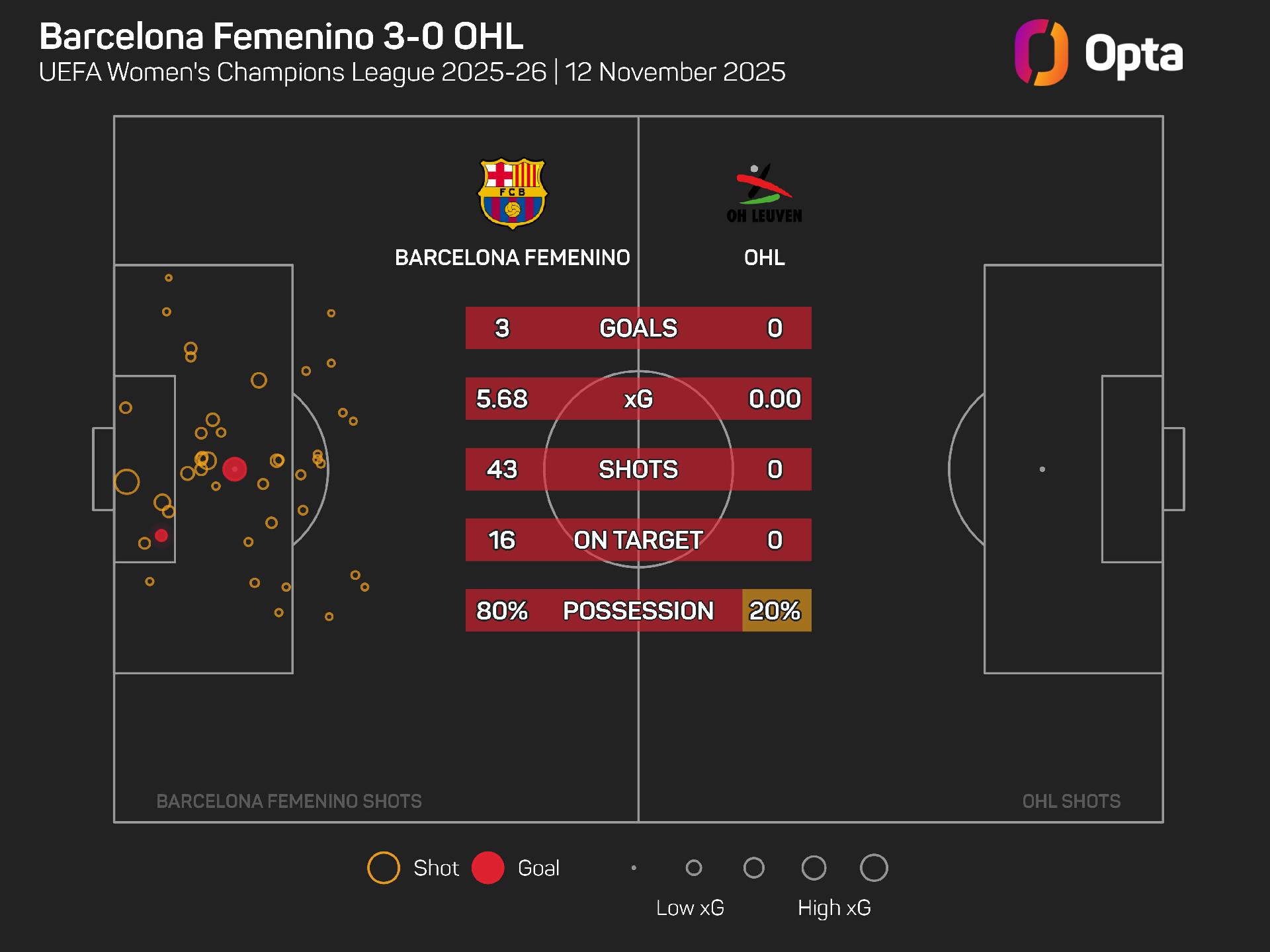 It was a convincing victory for Barca, but they should have won more handsomely at Estadi Johan Cruyff, where they had 43 shots with a total expected goals (xG) value of 5.68.