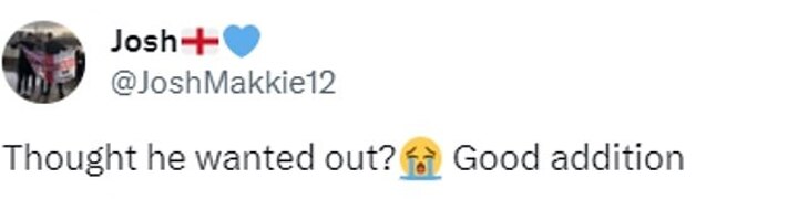 'Thought he wanted out? Good addition,' commented another.