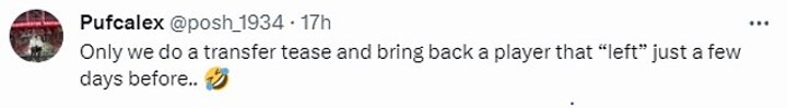 'Only we do a transfer tease and bring back a player that “left” just a few days before,' wrote one on X, formerly Twitter.