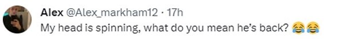 'My head is spinning, what do you mean he’s back?' said one.