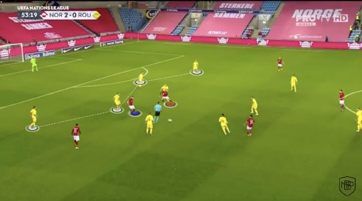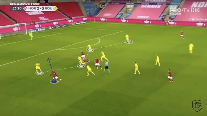 Haaland usually stays fixed in a central position and acts as an axis from one wing to another. This helps his side keep their shape and creates more space for him to receive the ball by stretching the opposition backline.