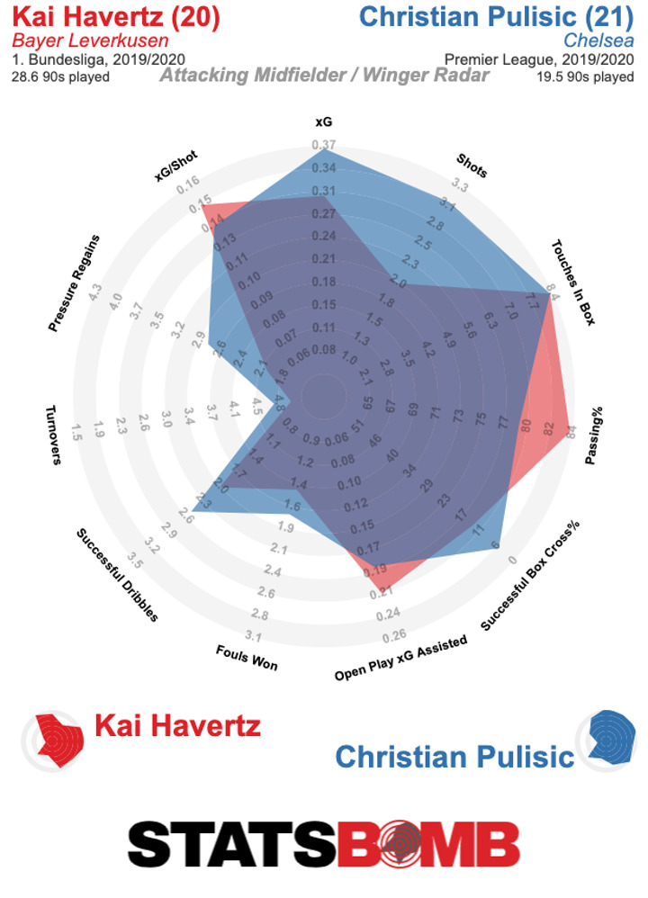 What will Frank Lampard be getting? According to Statsbomb, Havertz is strikingly similar to fellow youngster Christian Pulisic - who began to look capable of filling Eden Hazard's boots as the season progressed this season. Chelsea appear to be in the hunt for even more youthful flair - as if they needed any more.