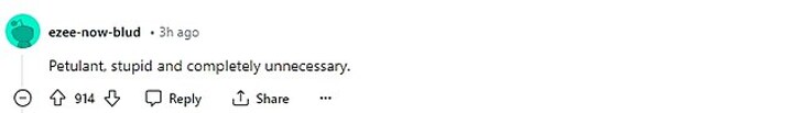 While another commented: 'Petulant, stupid and completely unneccessary.'