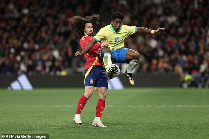 Brazilian wonderkid Endrick was involved in an off-the-ball clash with Spain's Marc Cucurella, sparking a touchline row involving Vinicius Jnr.