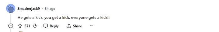 Another joked: 'He gets a kick, you get a kick, everyone gets a kick!'