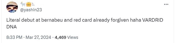 Fans made light of the incident, with one suggesting that he was let off a red card on his debut at the Bernabeu - with Endrick just receiving a yellow.