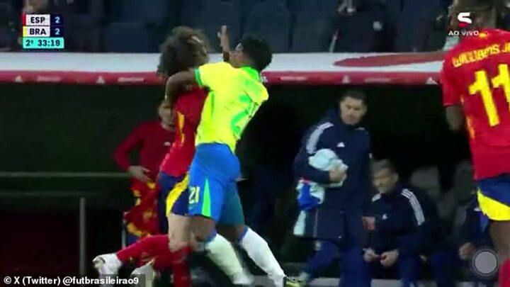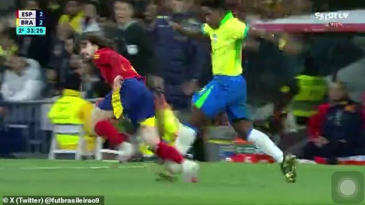 It left Spain's bench furious with Endrick, as they rushed up to protest and complain that the teenager should receive a card.