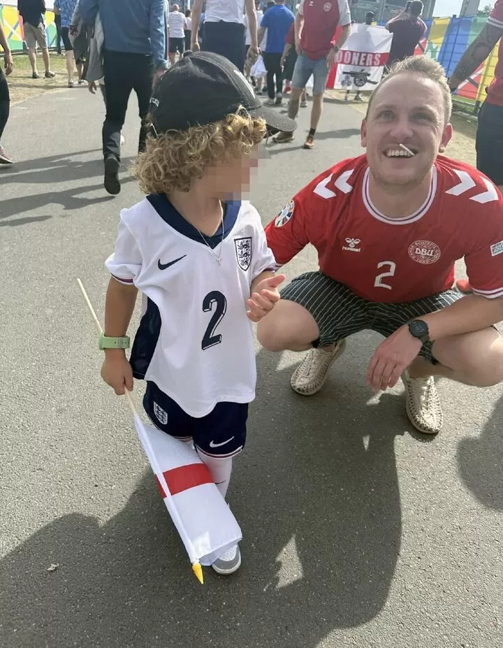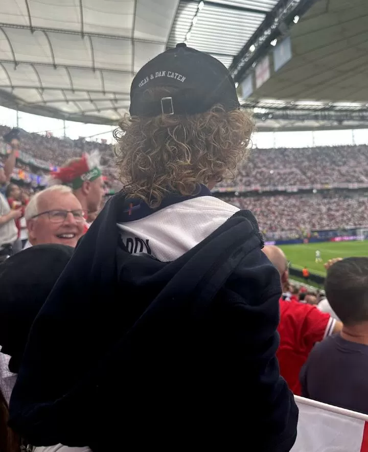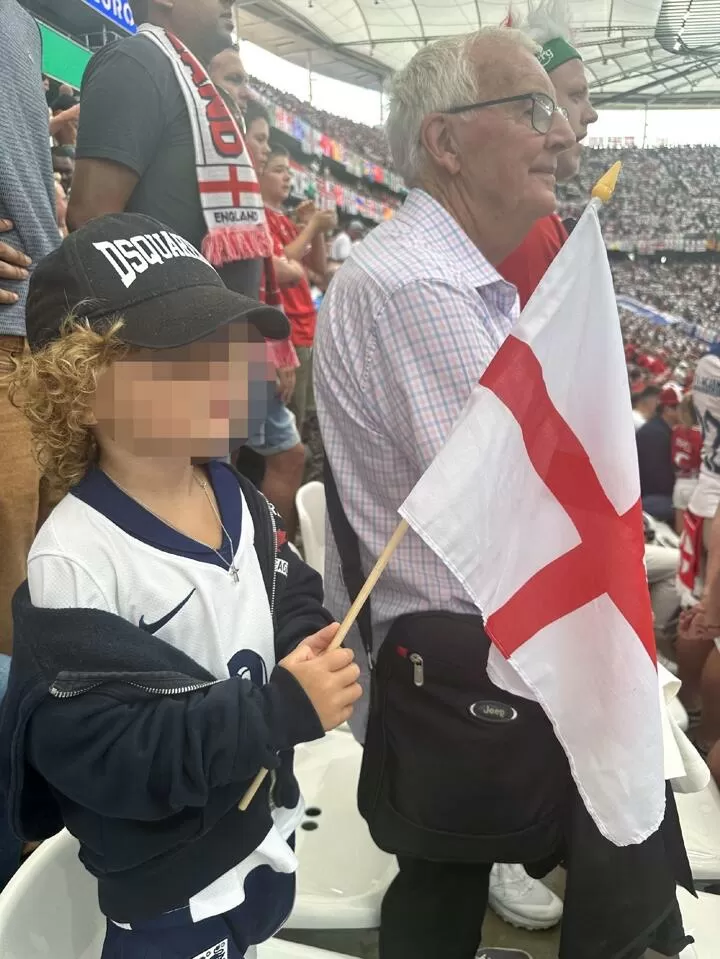 Kairo wore a Three Lions shirt with "Daddy" and the number two on the back as well as waving an England flag.