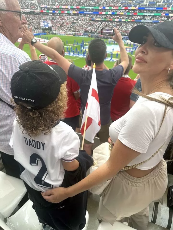 LAURYN Goodman's son Kairo wore an England shirt with "Daddy" to watch Kyle Walker play against Denmark last night.