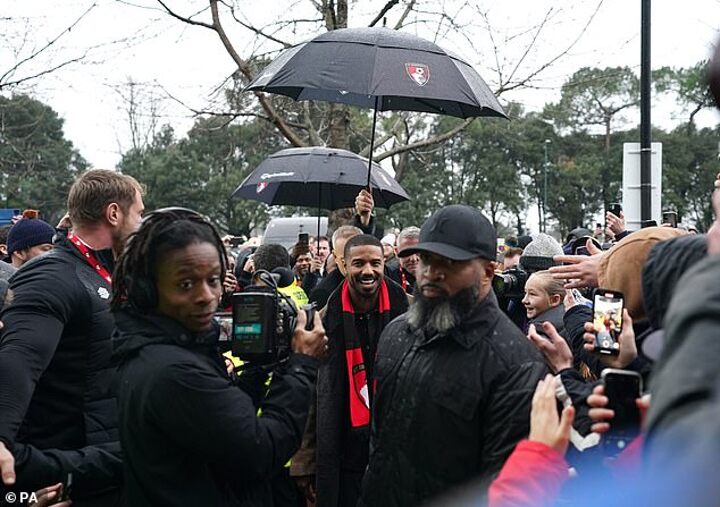 Michael B Jordan sprinkled a little bit of Hollywood stardust on a wet and windy Bournemouth on New Year's Eve, as he attended a home game for the first time since taking over as co-owner of the team.