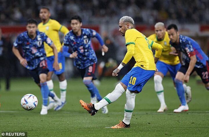 Neymar coolly slotted the ball past Shuichi Gonda to hit his 74th goal in 119 internationals after being frustrated on several occasions by the Japanese goalkeeper in front of a rain-soaked crowd of 63,638 fans.