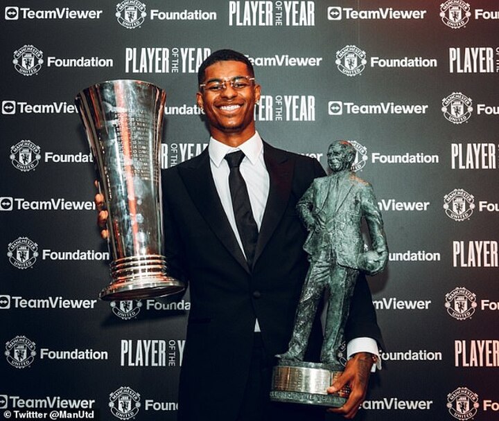 'I feel a huge sense of pride,' said Rashford, who has scored 30 goals in all competitions ahead of Saturday's FA Cup Final. 'I just hope that more academy players can go on and win this award and feel what I'm feeling right now on the stage.'