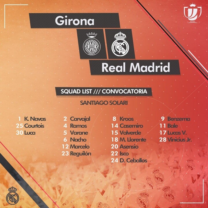 Real Madrid have announced their squad against Girona in Copa de Rey